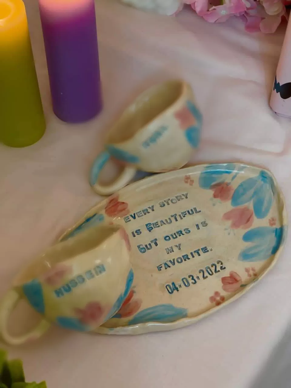 صحن مشكل يديوياً مع رسوم الازهار البرية باللون الاحمر والسماوي