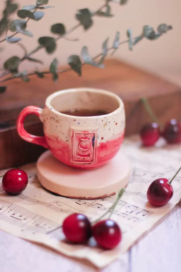 كوب بختم حب بارز باللون الاحمر